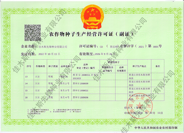 走進(jìn)我們 COME INTO US 您現(xiàn)在的位置:網(wǎng)站首頁(yè) > 走進(jìn)我們 >資質(zhì)榮譽(yù) 公司簡(jiǎn)介 企業(yè)文化 領(lǐng)導(dǎo)致辭 資質(zhì)榮譽(yù) 農(nóng)作物種子生產(chǎn)經(jīng)營(yíng)許可證(副證) 農(nóng)作物種子生產(chǎn)經(jīng)營(yíng)許可證(副證) 農(nóng)作物種子生產(chǎn)經(jīng)營(yíng)許可證(副證) 黑農(nóng)48省農(nóng)作物品種合格證書 黑農(nóng)48植物新品種權(quán)證書 綏農(nóng)26植物新品種權(quán)證書 共32條記錄 當(dāng)前為第2頁(yè)/共6頁(yè)上一頁(yè)1234...6下一頁(yè)