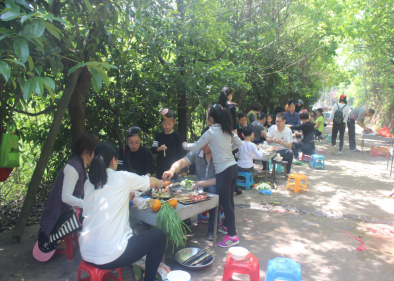 中午11時(shí)左右,下山的客戶朋友稍作休息后就迫不及待來到燒烤場(chǎng),準(zhǔn)備享受美味的食物。